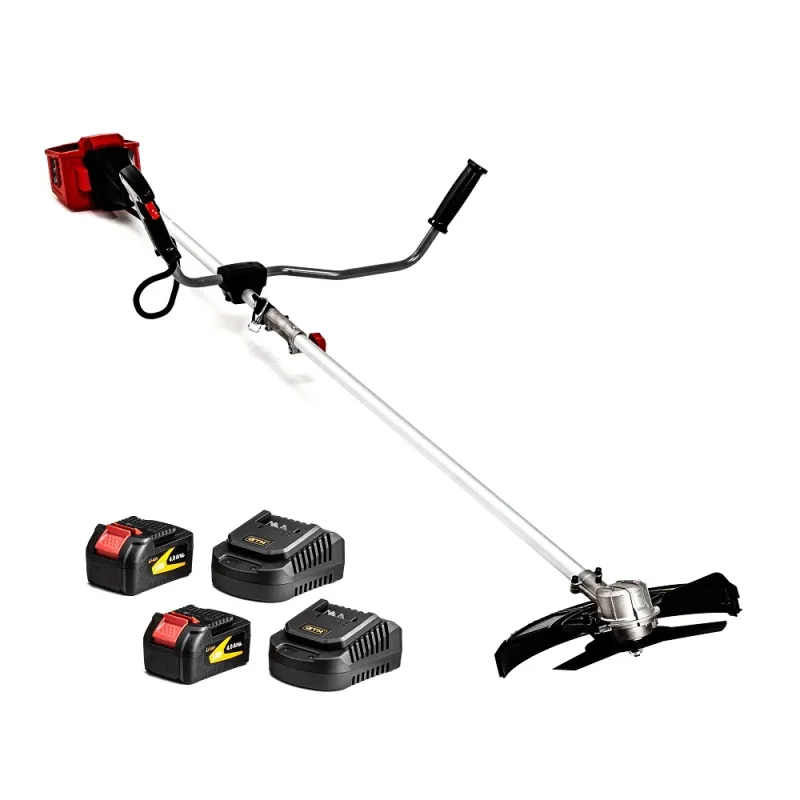 Аккумуляторный триммер GTM BC36/340BL KIT поставляется с двумя аккумуляторами и зарядным устройством. Модель оснащена бесщеточным двигателем, работает от схемы 18+18 В, поддерживает леску и нож и подходит для ухода за участком без бензина и кабеля.