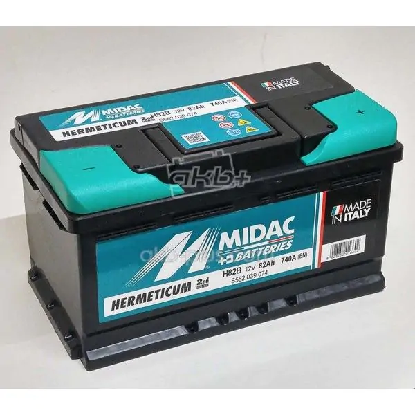 Аккумулятор 6СТ-82 MIDAC HERMETICUM 12V, 82AH (-/+) низкий Евро, 12В, 82АЧ, EN740А по выгодной цене
