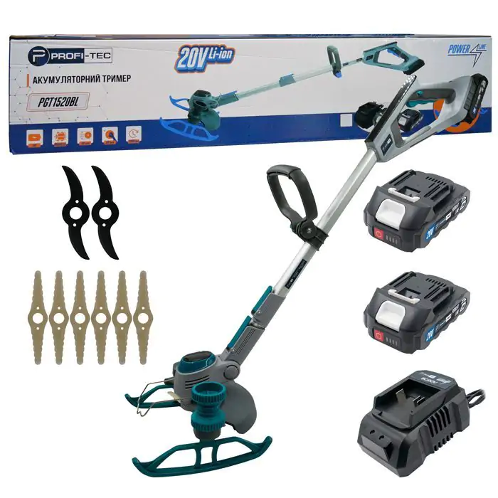 Аккумуляторный триммер PROFI-TEC PGT1520BL POWERLine (2*PT2020MP (2.0 Ач), зарядное устройство)