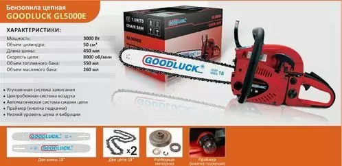 Технические характеристики: Бензопила Goodluck 5000Е (2 шины 2 цепи)