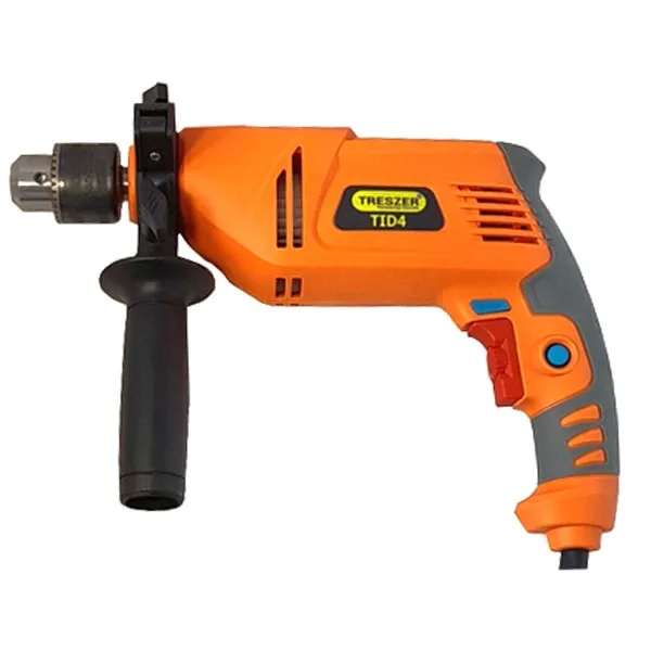 TRESZER TID4 — ударная электрическая дрель для тех, кому одной безударной модели уже мало. Она сверлит дерево и металл, работает с бетоном и камнем в ударном режиме, а реверс позволяет использовать ее для крепежа.