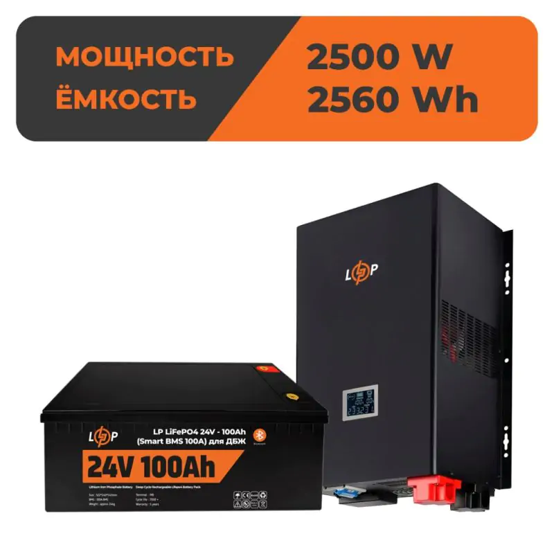 Комплект резервного питания LP(LogicPower) ИБП + литиевая (LiFePO4) батарея (UPS 3600VA + АКБ LiFePO4 2560W) – мощное решение для обеспечения бесперебойного питания требовательного оборудования. Включает линейно-интерактивный ИБП (3600VA/2500W) с правильной синусоидой, что гарантирует стабильное питание чувствительной техники, и литиевую (LiFePO4) батарею ёмкостью 100Ah (2560W) для длительного времени автономной работы. ИБП работает в диапазоне входного напряжения 150-282V и обеспечивает выходное напряжение 220/230/240±5%. Имеет клеммы для подключения нагрузки и к сети. Функция AVR стабилизирует напряжение, LCD-индикация предоставляет информацию о работе системы. Максимальный ток заряда АКБ – 100A, ИБП – 1-50A. Ресурс АКБ – до 7000 циклов. Гарантия: 24 месяца на ИБП, 60 месяцев на АКБ.