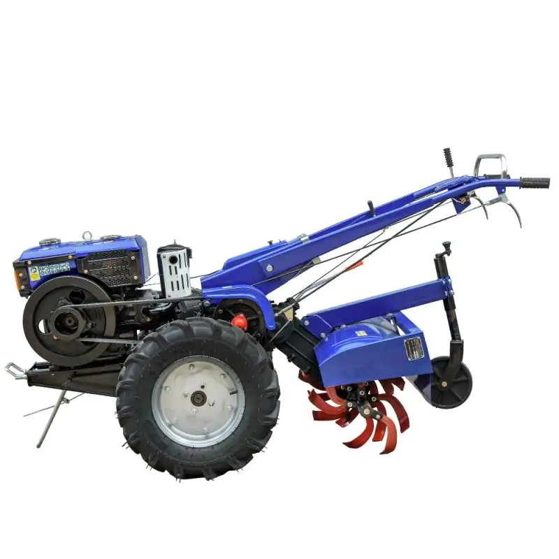 Если мотоблок берется для больших участков, смотрите на мощность, охлаждение и тип фрезы. Дизель на 10 л.с. с жидкостным охлаждением — хороший вариант для длительной работы без перегрева. Активная фреза с широким захватом экономит время, а коробка передач 6+2 позволяет подобрать правильную скорость под разные грунты и задачи.
