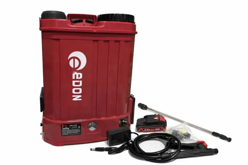 Edon AGS-21/12L — это аккумуляторный ранцевый опрыскиватель с возможностью быстрой замены батареи. Модель разработана для удобной и непрерывной работы на участке без необходимости ручной подкачки давления.