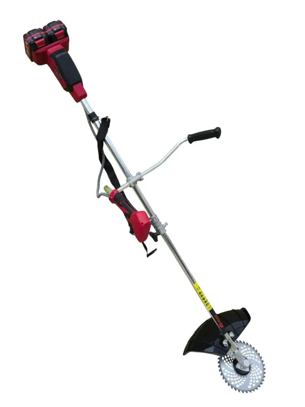 Акумуляторний тример 42 В із верхнім двигуном, розбірною штангою, велосипедною рукояткою і комплектом із двох АКБ та зарядного пристрою.