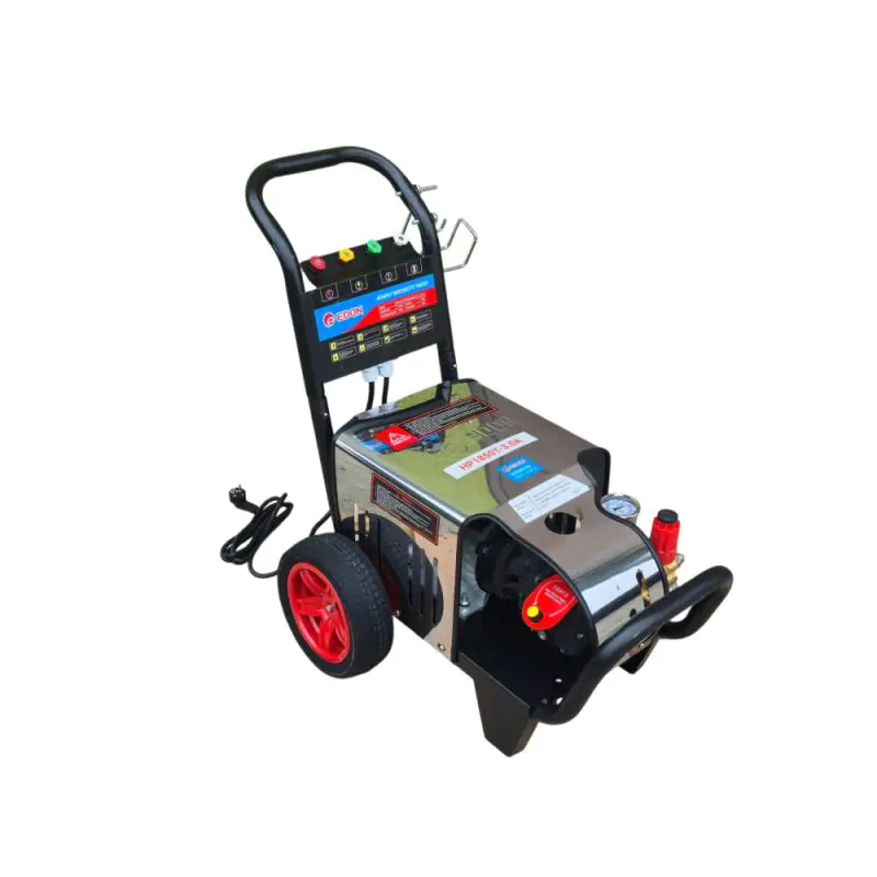 Мийка високого тиску Edon HP1850T-3.0A — потужна модель 3000 Вт з тиском до 230 бар, витратою до 840 л/год та латунною помпою. Підходить для інтенсивного миття авто, техніки та очищення сильно забруднених поверхонь.