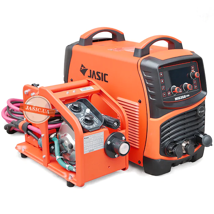 Зварювальний напівавтомат Jasic MIG-350 (N216 II) JET — промисловий інвертор 350А з живленням 380 В, окремим механізмом подачі на 4 ролики та підтримкою режимів MIG/MAG, TIG і MMA. Підходить для виробництва, СТО та інтенсивної роботи.