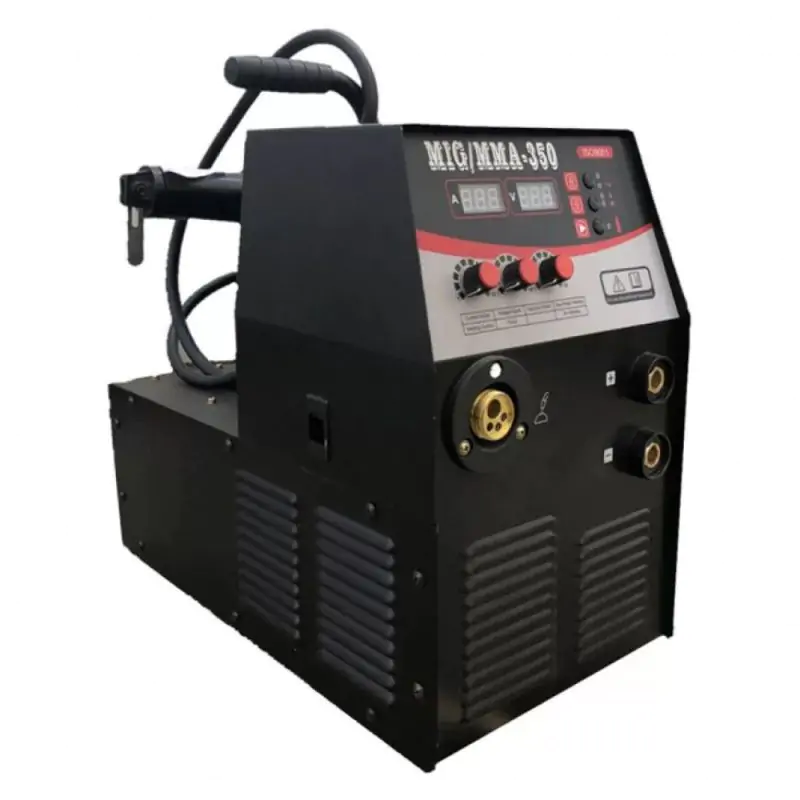 Зварювальний напівавтомат Луч Профи MIG / MMA 350 входить в серію промислової зварювальної техніки, яка використовується на виробництві. Підживлюється ця модель від трьохфазову мережі, з напругою в 380В і частотою струму - 50Гц. Номінальний струм зварювання агрегату - 270А. Робоча напруга можна змінювати в межах від 16,5 до 31,5. Самий мінімальний струм зварювання становить - 30А, а максимальний струм зварювання - 350А. Проводити з ним можна зварювання чорного і кольорового металу і сплавів з них (виробів і конструкцій), за допомогою напівавтоматичного і ручного електродугового зварювання. Охолодження у нього ефективне, повітряне. Якість швів зварювання дуже висока і їх не потрібно зачищати.